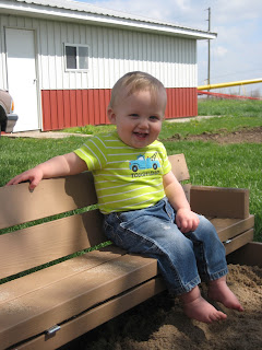 ...says, "ball" "mama" "dada" "ahh" (when he wants a drink) and "MMM" (at the cows)